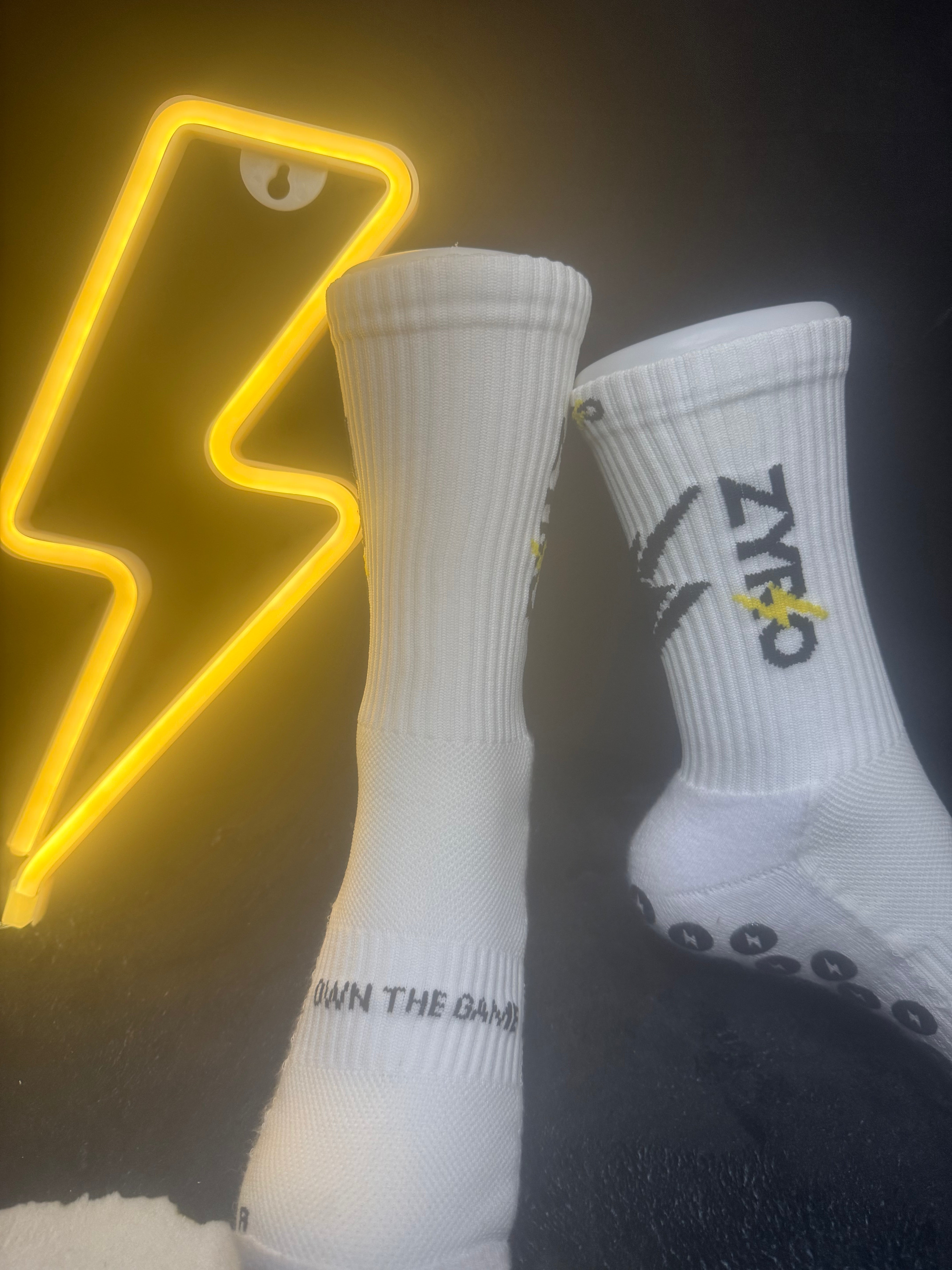 Engineered for athletes who demand the best, Zyro grip socks deliver elite traction, stability, and comfort with every step. Designed using advanced grip technology and breathable, high-performance materials, Zyro keeps you locked in, light on your feet, and ready for every challenge. This isn’t just another pair of socks it’s a game changer built for the next generation of players who move with purpose and play with passion.